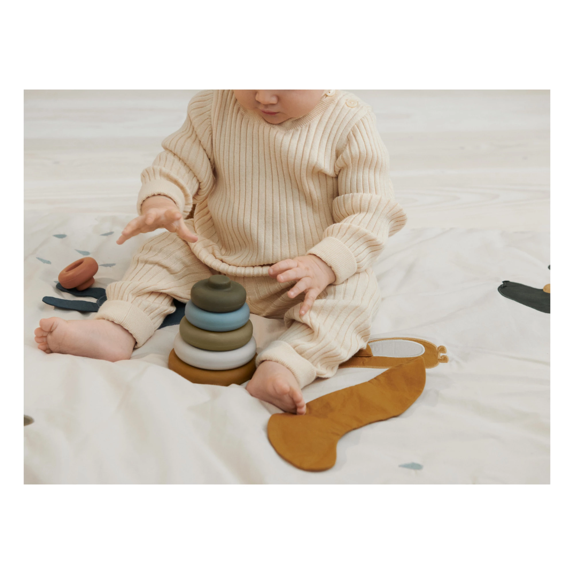 - An aesthetically pleasing stacking tower to keep your little one entertained!