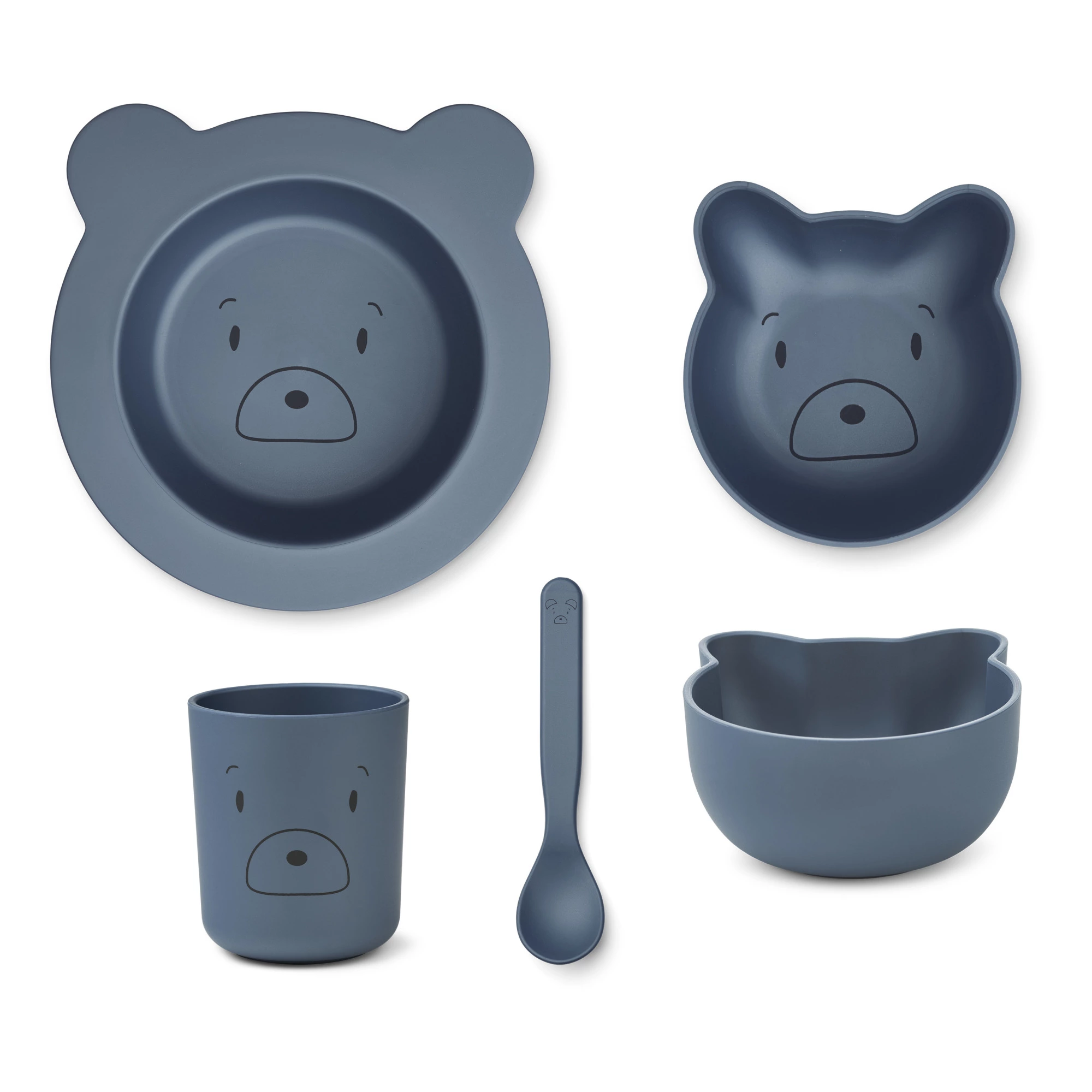 - This adorable set, made up of a plate, a bowl, a cup and a spoon, will make your child’s meal times fun.