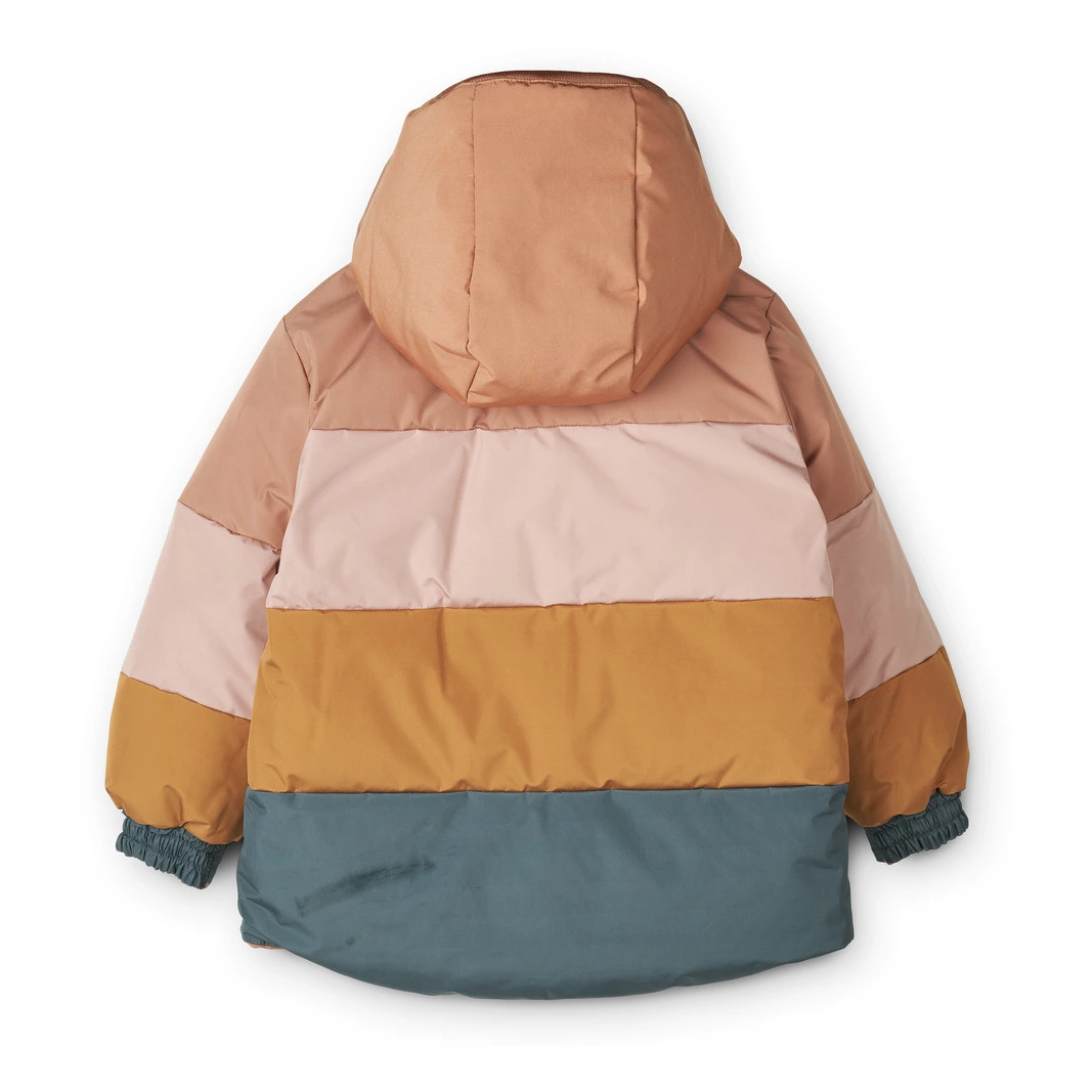 - Lined, Long sleeves, Padded outside, Piped pocket(s), Elastic cuffs, Hood, Warm and comfortable