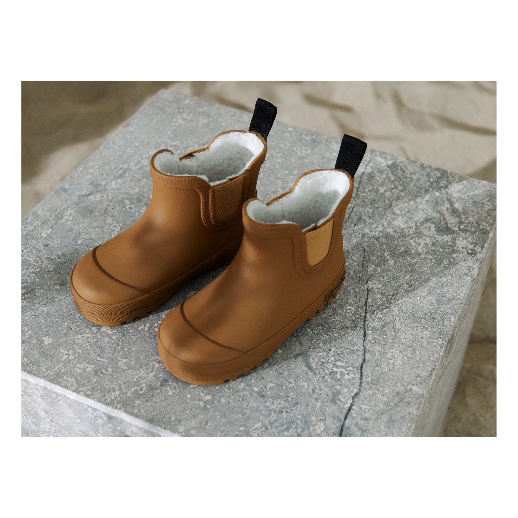 - Elastic at ankles, Waterproof, Heel loop, Non-slip soles, Integrated logo on the back of the shoe, Warm and comfortable